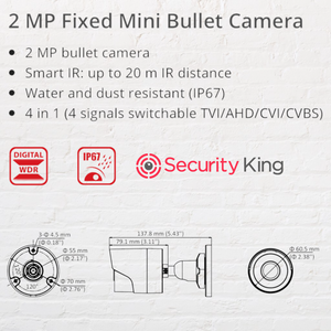 Featuring advanced HD-TVI technology, it provides crisp 1080p resolution video over coaxial cable, making it ideal for both new and upgraded CCTV systems. With its powerful EXIR infrared technology, the camera ensures clear night vision up to 20 meters, delivering superior low-light performance and uniform illumination.